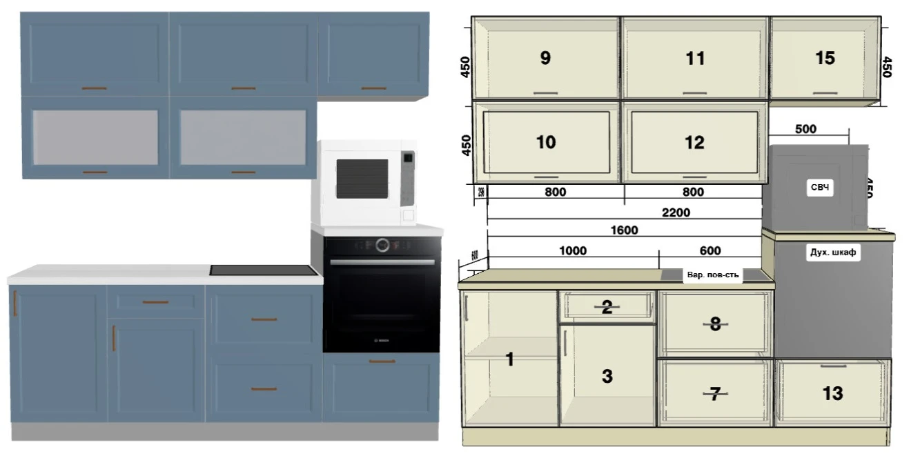 Длина прямой стороны2200