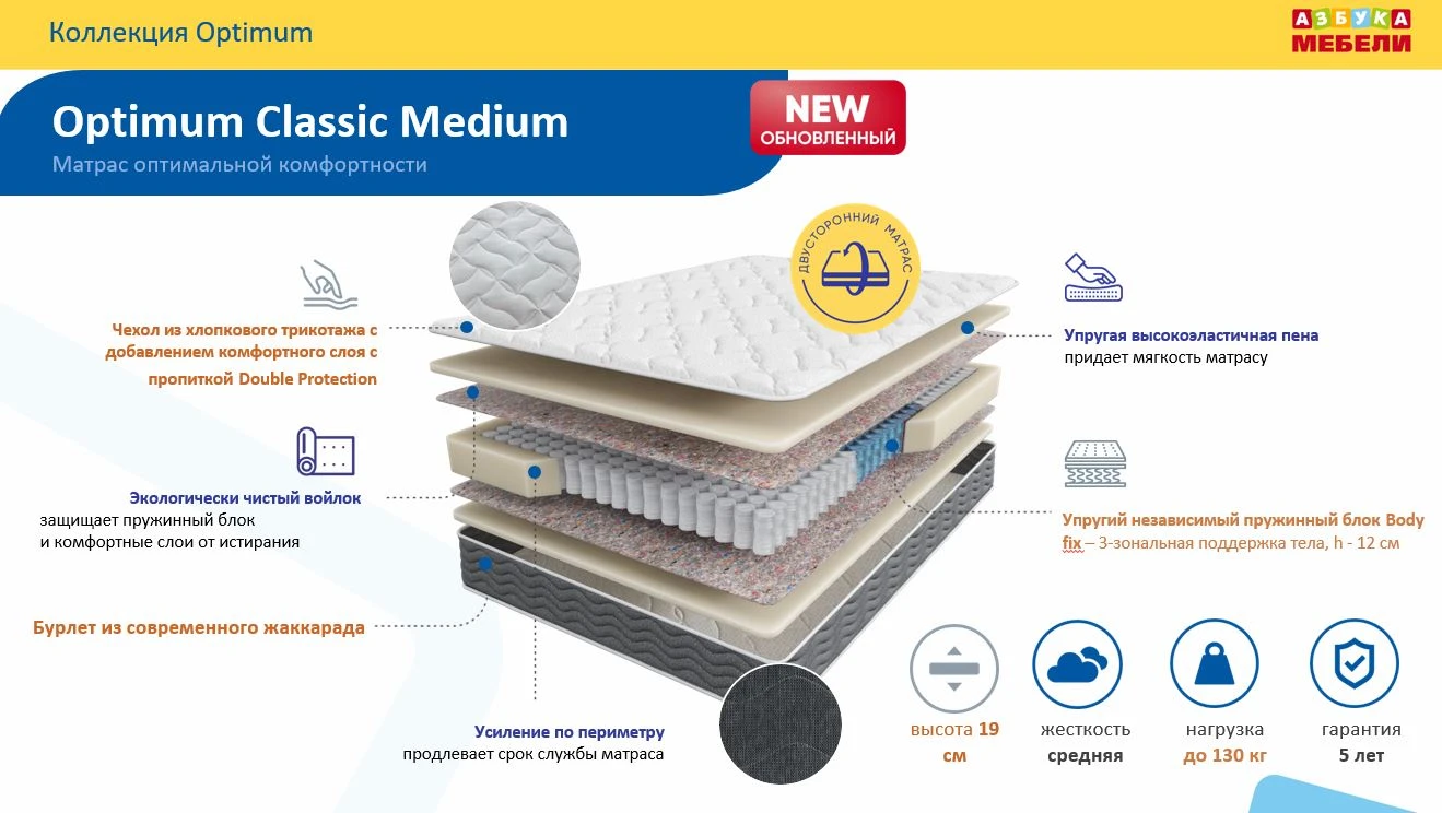 OPTIMUM CLASSIC MEDIUM 1400*2000 NEW (GREY), норма - фото 1 - миниатюра