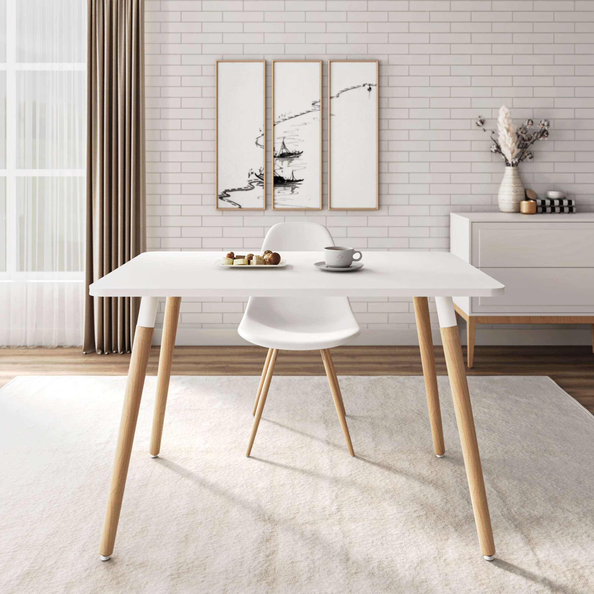 АМАДЕО-1/САНТЪЯГО (белый матовый / металл белый / светлое дерево)