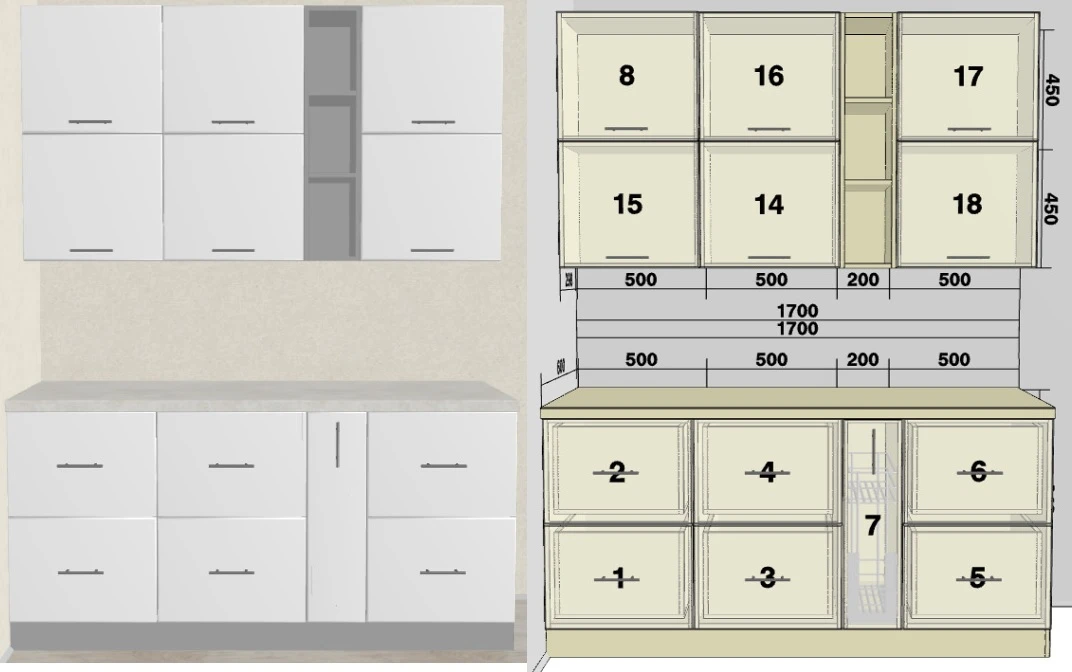 Длина прямой стороны1700