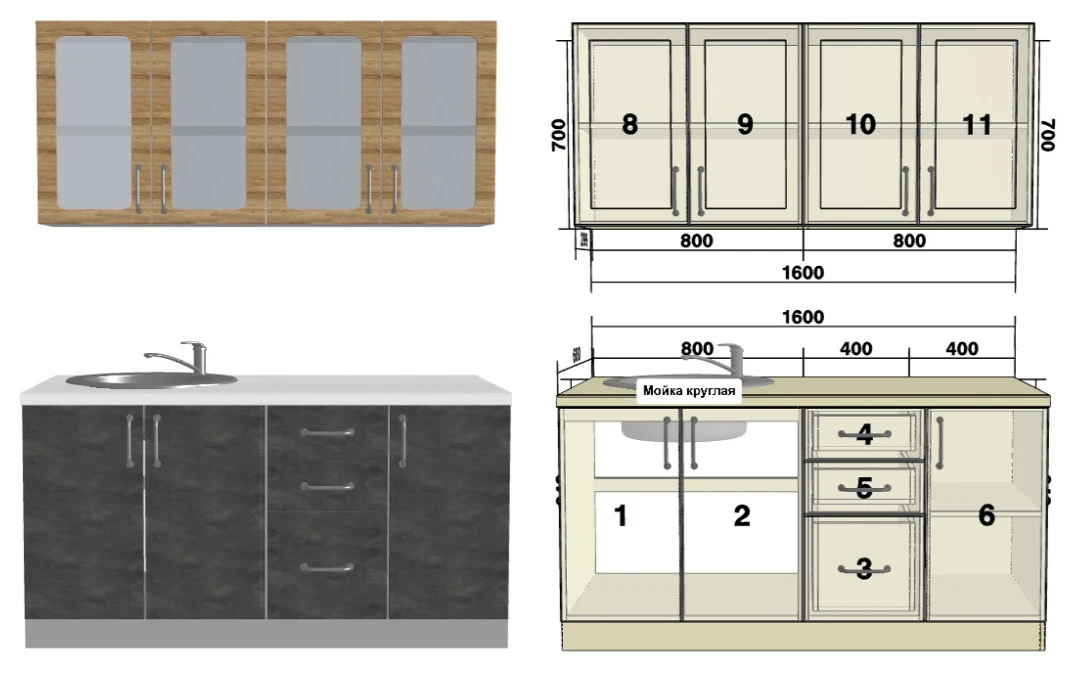 Длина прямой стороны1600