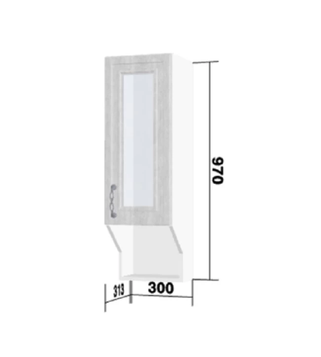 шкаф 300 мм стекло, с открытой полкой (арт. ЛД 275.410 + арт. ЛД 270.510 белый)