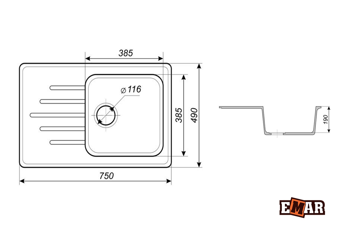EMAR МРАМОР EMМ-175 МОЙКА ВРЕЗНАЯ 750*490 ММ, сахара, норма