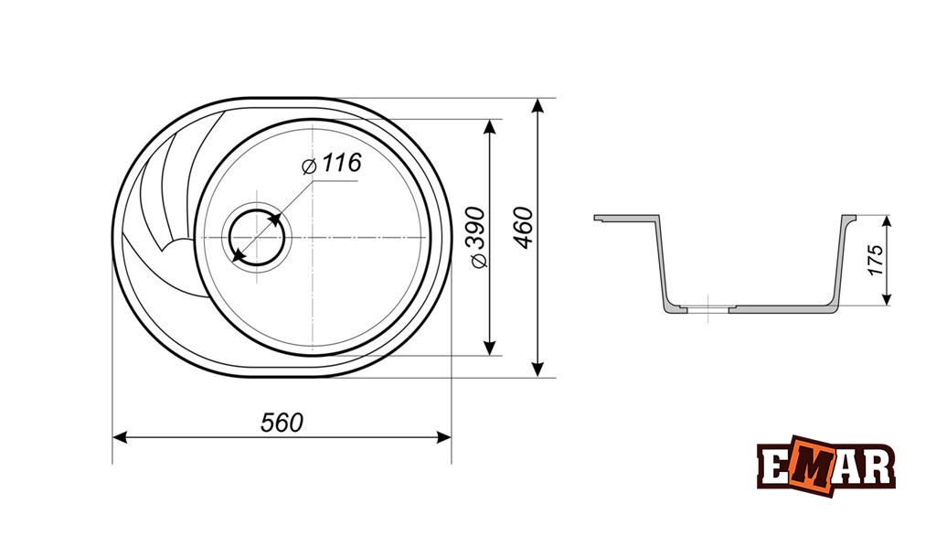 EMAR МРАМОР EMМ-156 МОЙКА ВРЕЗНАЯ 560*460 ММ (перу) - фото 2