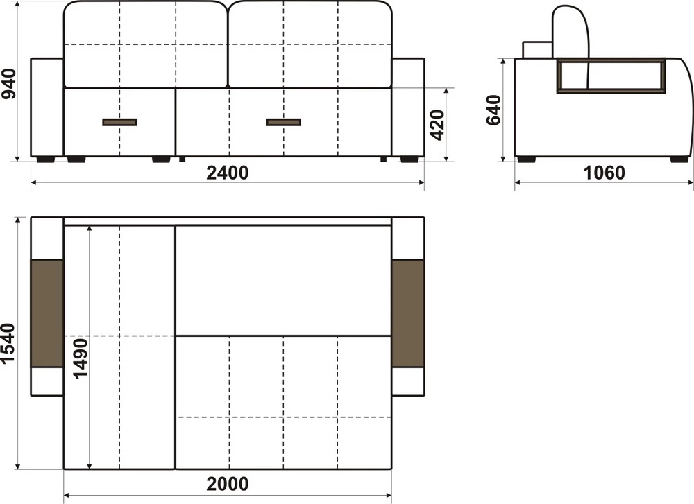 Форма подлокотниковШирокие
